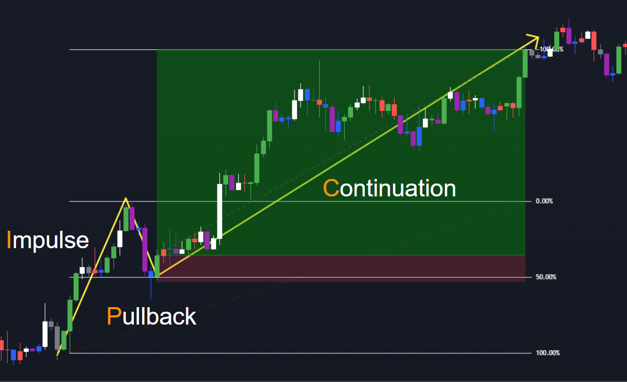 The F50 Indicator helps you instantly spot the Impulse, Pullback, and Continuation pattern — a timeless setup that’s worked since markets began.