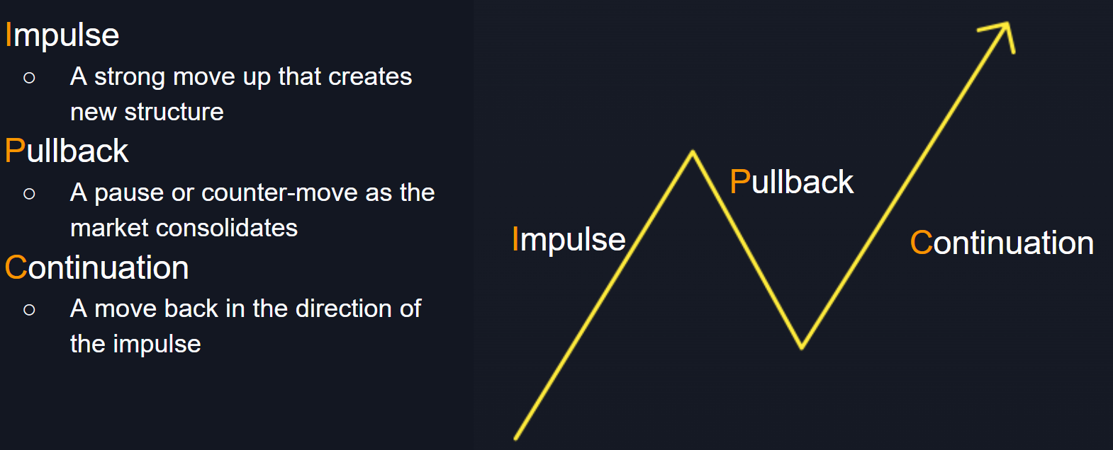 When the market pauses or pulls back, the indicator helps you identify pinpoint entries into the continuation of the IPC pattern.